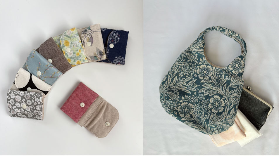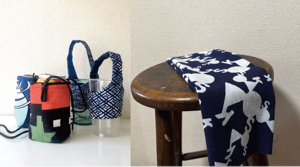 草加の伝統産業「注染」の浴衣や手拭いの生地で、グッズを制作。日常に取り入れやすいデザインで、伝統を身近に楽しんでください。