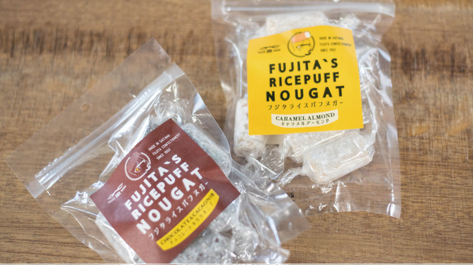 埼玉銘菓「五家宝」と、洋のテイストを加えた「フジタライスパフヌガー」もご用意